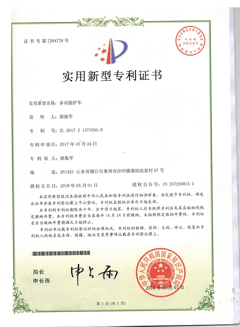 • 開啟兩頭忙、攪拌斗裝載機的研發與生產;斬獲“多功能鏟車”“抓吊挖一體機”兩項國家專利;同年,公司正式更名為萊州巨浪機械有限公司,標志著企業發展邁入新階段。